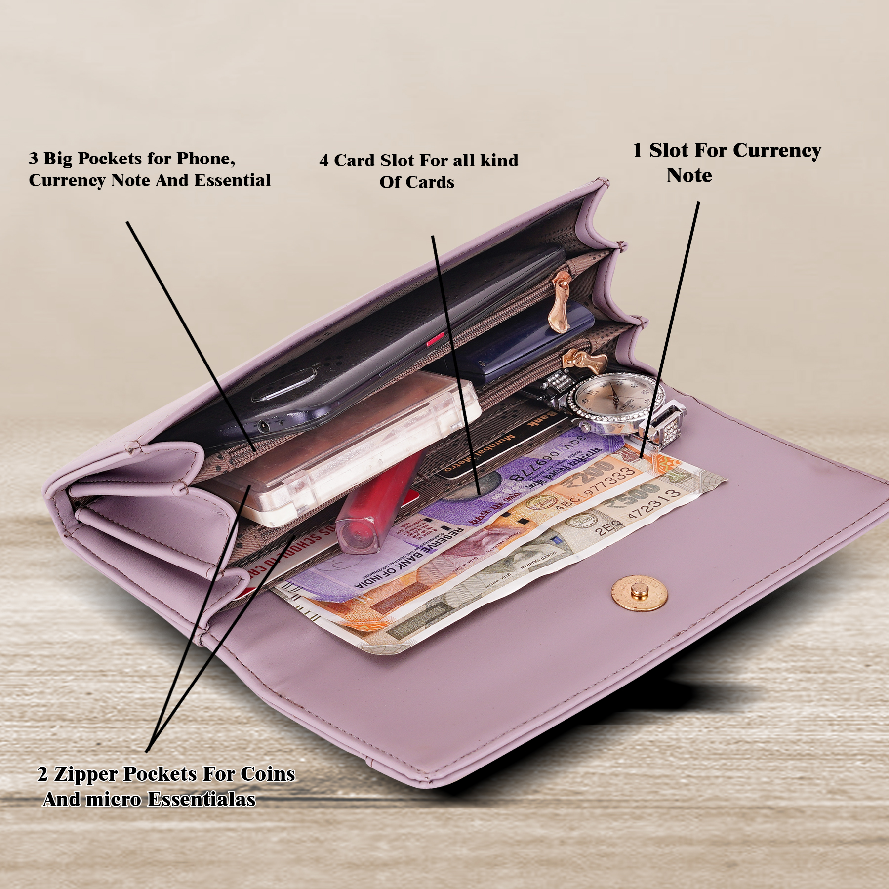 Perfect for women who love subtle colours with a hint of ethnic charm, this long wallet is ideal for daily use, casual outings, and gifting.