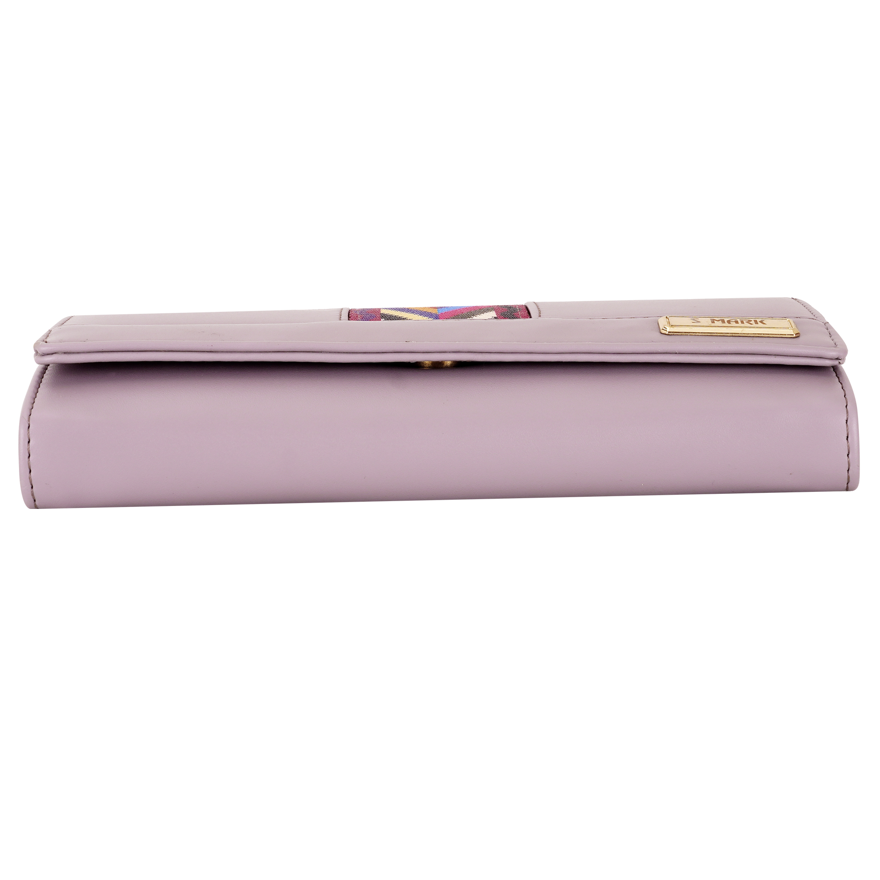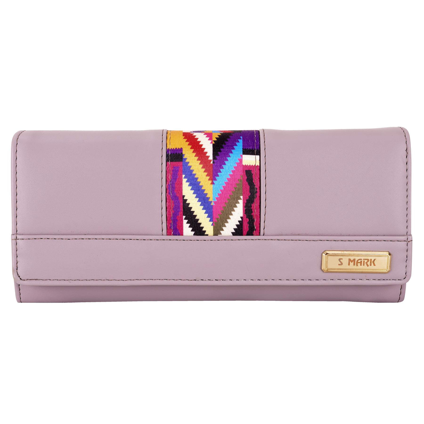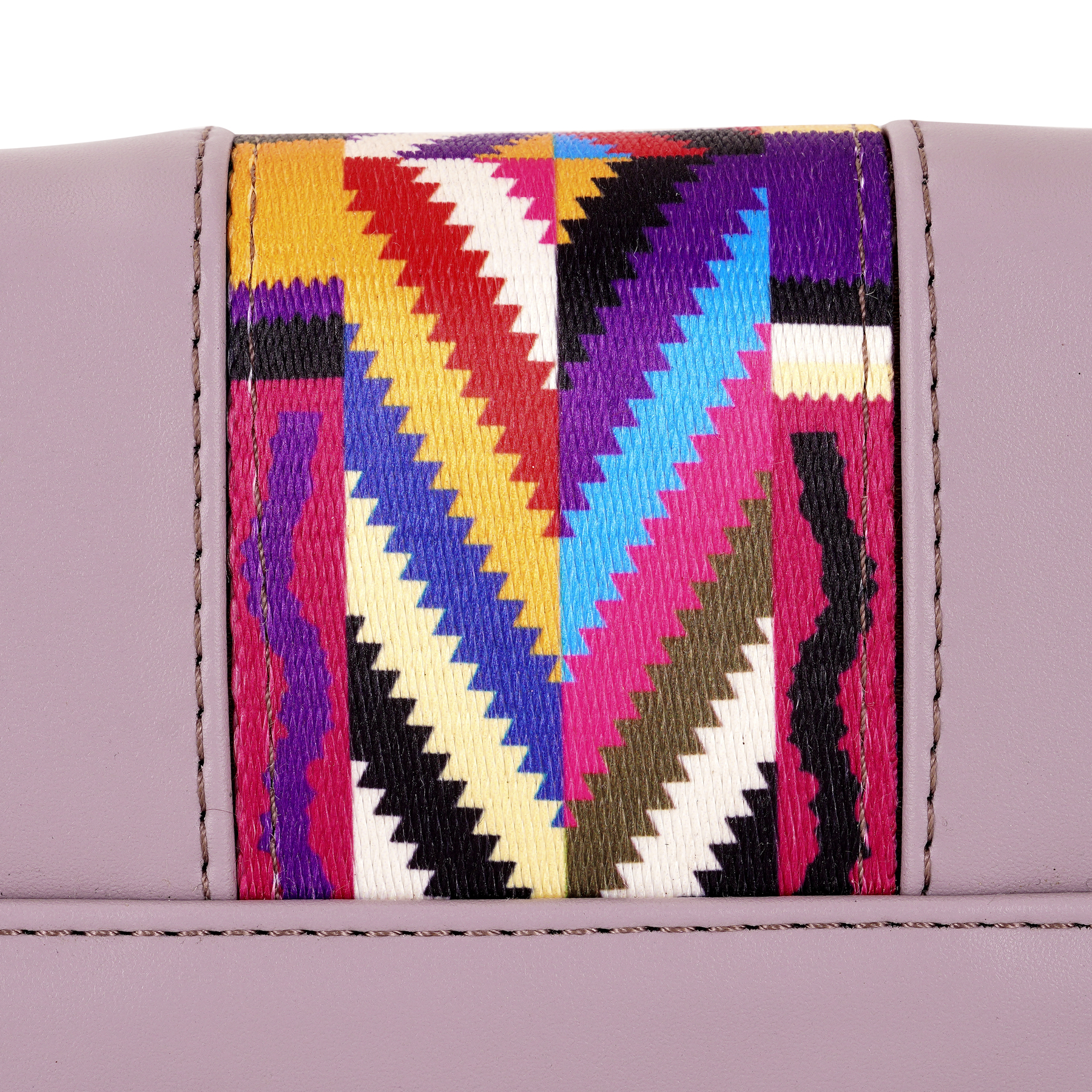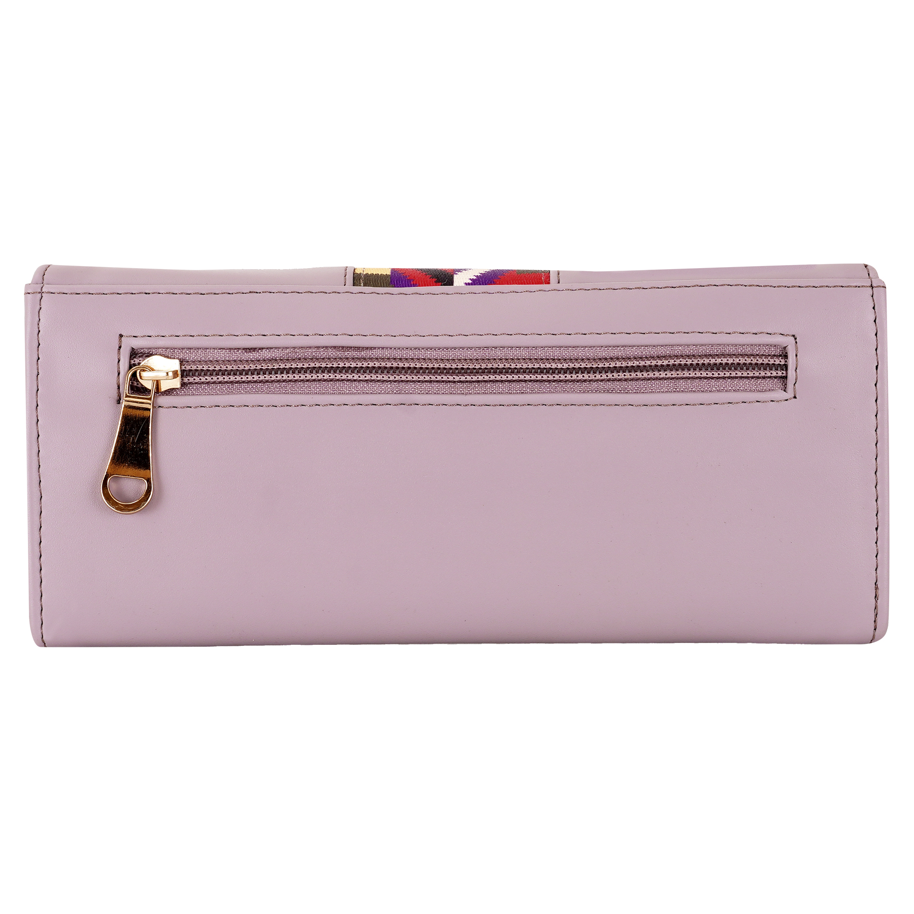 Add a soft pop of colour to your everyday essentials with this lavender ethnic stripe long wallet for women. Crafted with a smooth, premium-finish exterior, this wallet features a vibrant multicolour woven stripe that brings a playful yet elegant touch to its minimalist design.