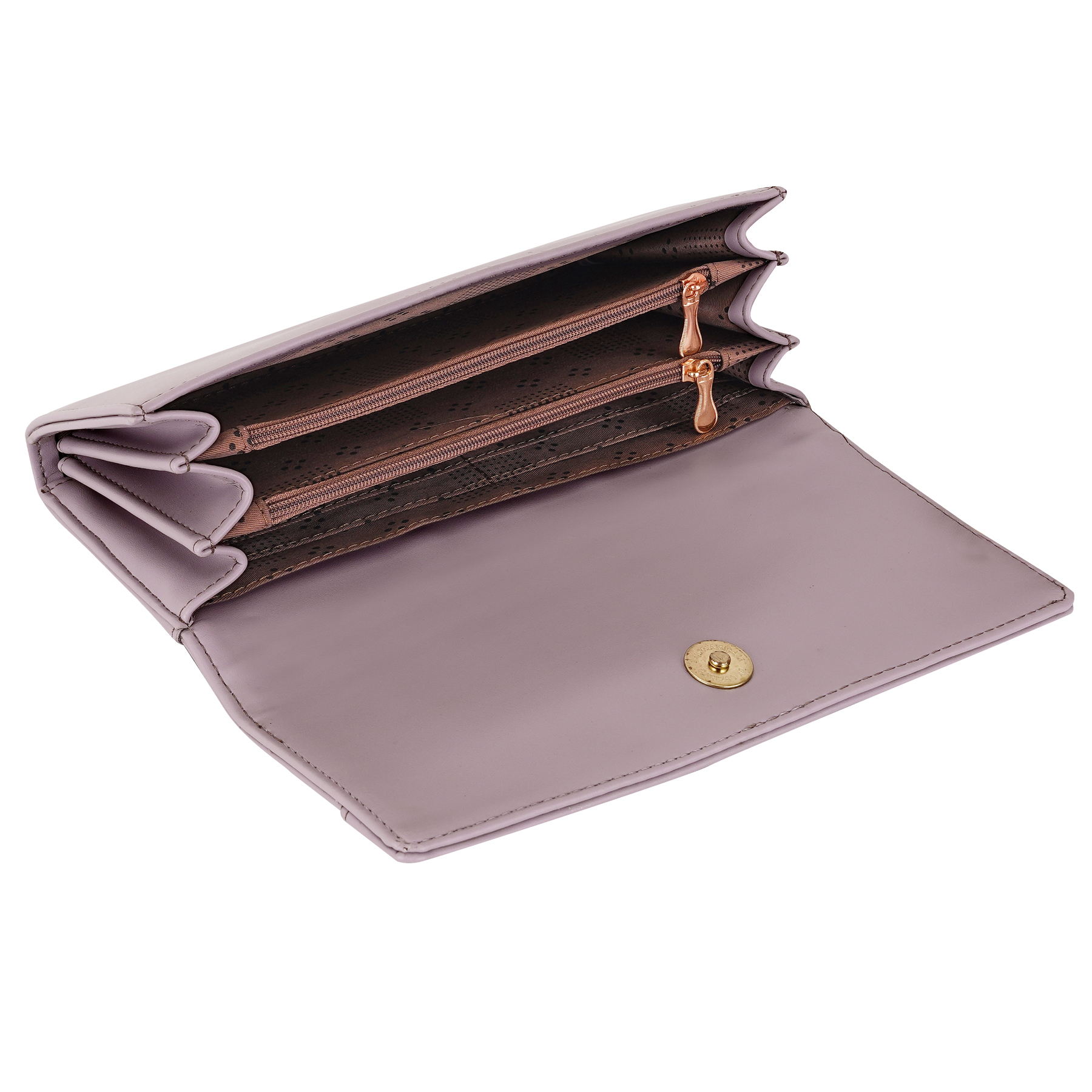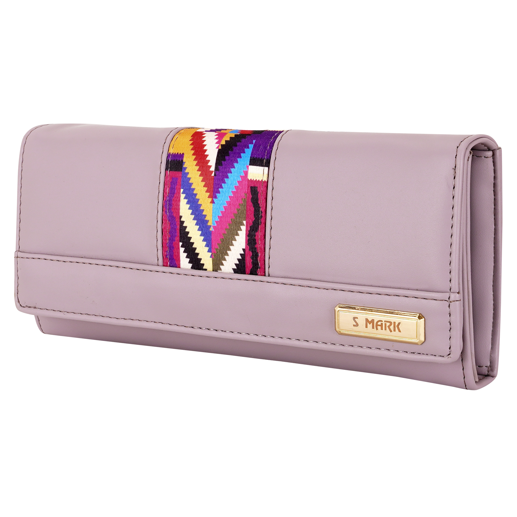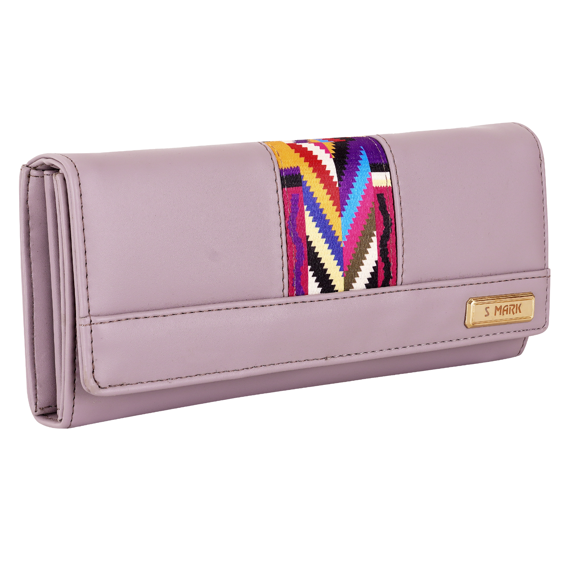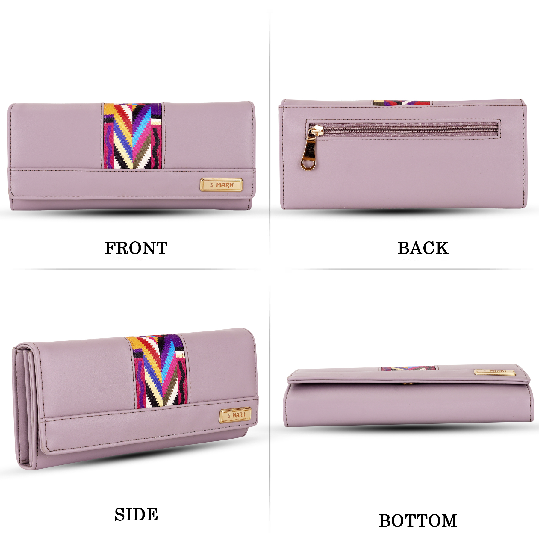 Add a soft pop of colour to your everyday essentials with this lavender ethnic stripe long wallet for women. Crafted with a smooth, premium-finish exterior, this wallet features a vibrant multicolour woven stripe that brings a playful yet elegant touch to its minimalist design.
